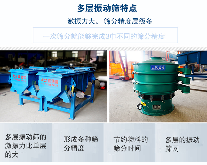 多層振動篩可對粉狀、顆粒狀物料的篩選和分級,廣泛用在塑料、磨料、化工、醫(yī)藥、建材、糧食、炭素、化肥等行業(yè).