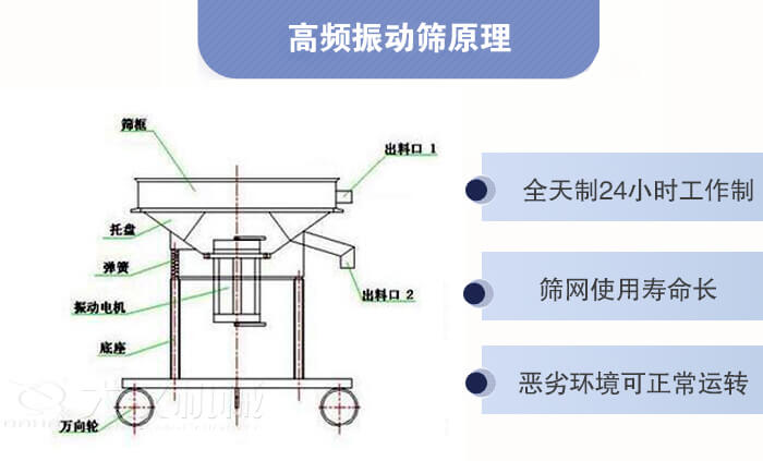 高頻振動篩又稱高頻過濾篩,結構簡單、體積小、具有高頻率,低耗能的特點