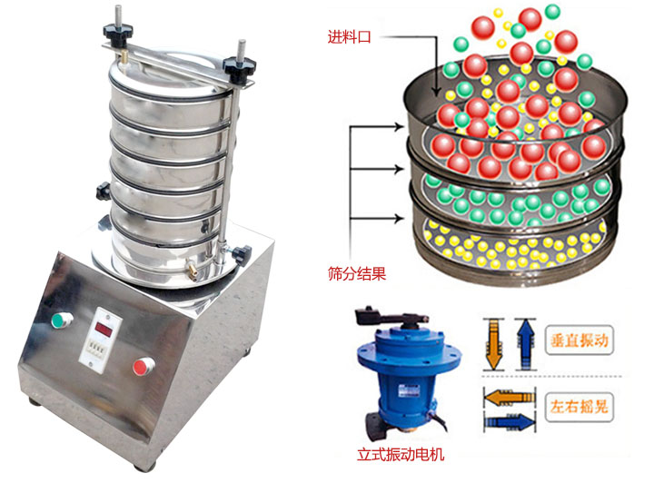 準試驗篩是以YZU立式振動電機作為整機振動源,通過振動電機帶動上部振動盤振動,再通過振動盤傳導至安放在振動盤上部Φ200篩框上,然后由需要檢測目數的篩框把小于篩面網孔的物料顆粒篩分至下層篩框,如此層層篩選,使每層試驗篩內只留相同粒度的物料,達到不同粒度的分離并確定此物料的粒度組成,使Φ200型篩框中的物料能非常有效的起到過濾、分級、篩分目的。