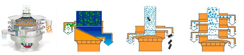 | 應用 | 要用于物料原料的篩分和成品的最終生產檢驗,可以去除產品中的結塊和污染物,一次操作最多可提供5級分級。 | 適合高粘性、高靜電細粉,篩分精度可以提高80%以上,產量提高2-5倍。 | 模擬人工篩分的動作,產生了水平和投擲的三維滾動運動,適用于500目以內的細粒狀物料,篩分精度提高了90-95%,產量是圓形振動篩的5-10倍。 | 適合一般的粗略篩分或除雜,的進、出料口設計在同一垂直方向上,這樣會加快物料的排料速度,處理量是普通圓形振動篩的2-5倍。 | 經常用在液體過濾行業,可去除液體或懸浮物中存在的不需要的顆粒,當然也是可以作為粉末除雜??捎迷谔幚砹枯^小的工廠或小型作坊。 |